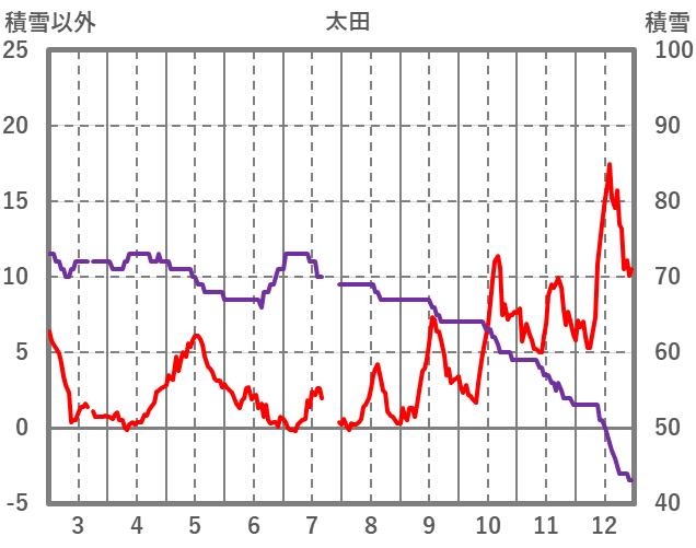 | 日 | 時 | 気温 | 降水 | 風向/風速 | 日照 | 積雪 | 降雪 |