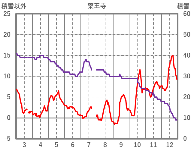 | 日 | 時 | 気温 | 降水 | 風向/風速 | 日照 | 積雪 | 降雪 |