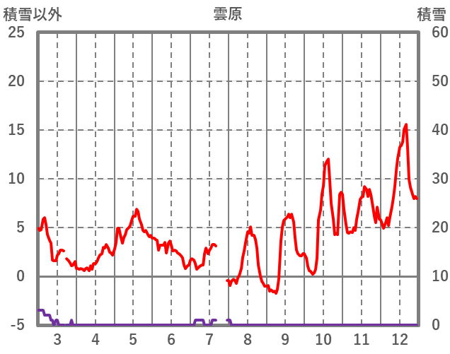 | 日 | 時 | 気温 | 降水 | 風向/風速 | 日照 | 積雪 | 降雪 |