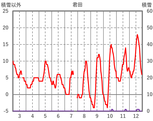 | 日 | 時 | 気温 | 降水 | 風向/風速 | 日照 | 積雪 | 降雪 |