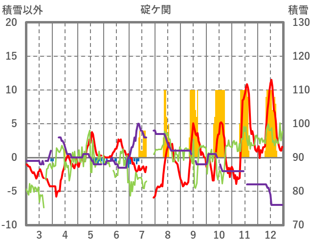 | 日 | 時 | 気温 | 降水 | 風向/風速 | 日照 | 積雪 | 降雪 |