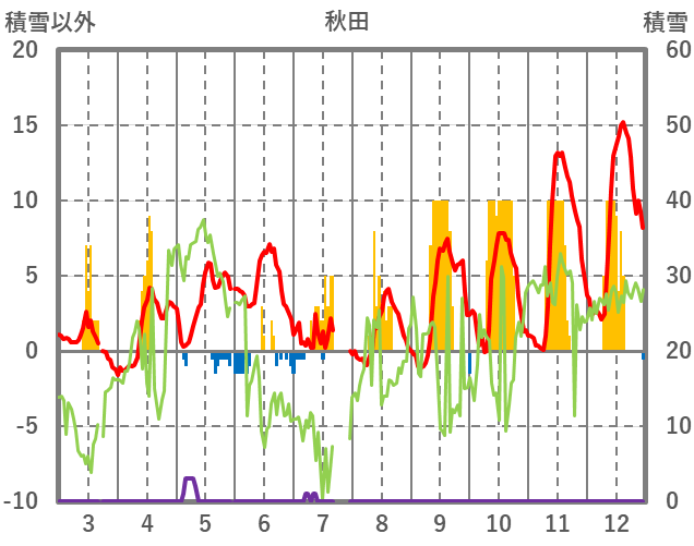 | 日 | 時 | 気温 | 降水 | 風向/風速 | 日照 | 積雪 | 降雪 |