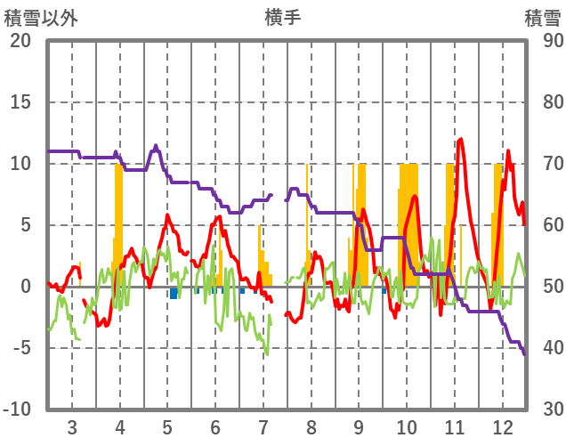 | 日 | 時 | 気温 | 降水 | 風向/風速 | 日照 | 積雪 | 降雪 |