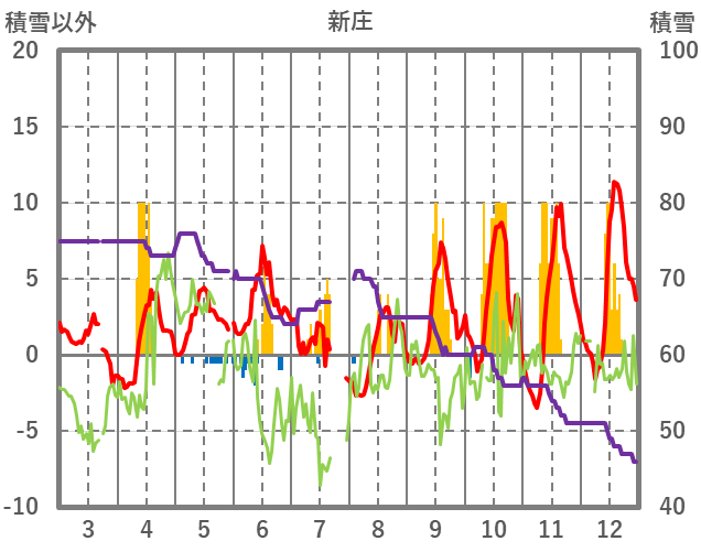 | 日 | 時 | 気温 | 降水 | 風向/風速 | 日照 | 積雪 | 降雪 |