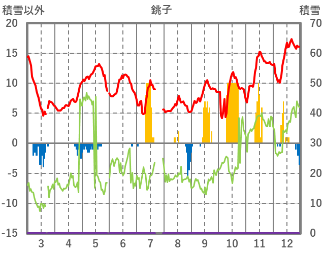 | 日 | 時 | 気温 | 降水 | 風向/風速 | 日照 | 積雪 | 降雪 |