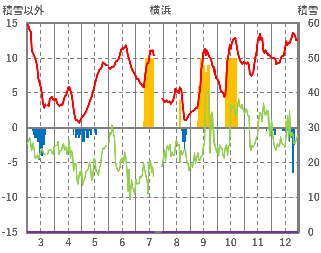 | 日 | 時 | 気温 | 降水 | 風向/風速 | 日照 | 積雪 | 降雪 |