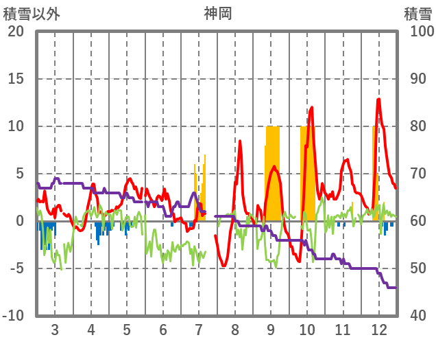| 日 | 時 | 気温 | 降水 | 風向/風速 | 日照 | 積雪 | 降雪 |