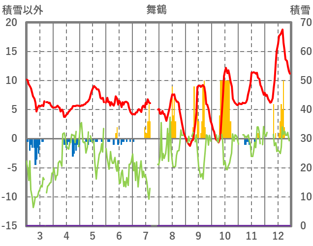 | 日 | 時 | 気温 | 降水 | 風向/風速 | 日照 | 積雪 | 降雪 |