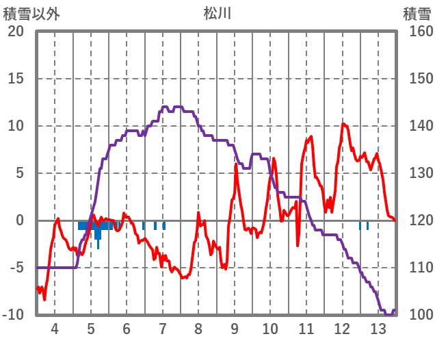 | 日 | 時 | 気温 | 降水 | 風向/風速 | 日照 | 積雪 | 降雪 |
