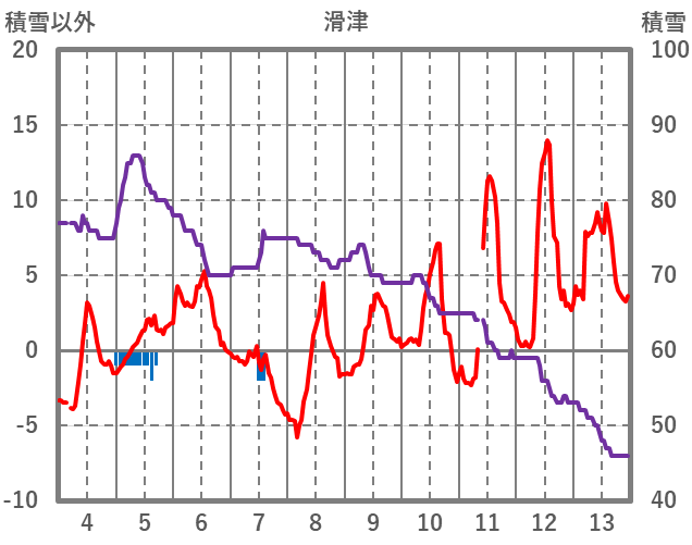 | 日 | 時 | 気温 | 降水 | 風向/風速 | 日照 | 積雪 | 降雪 |