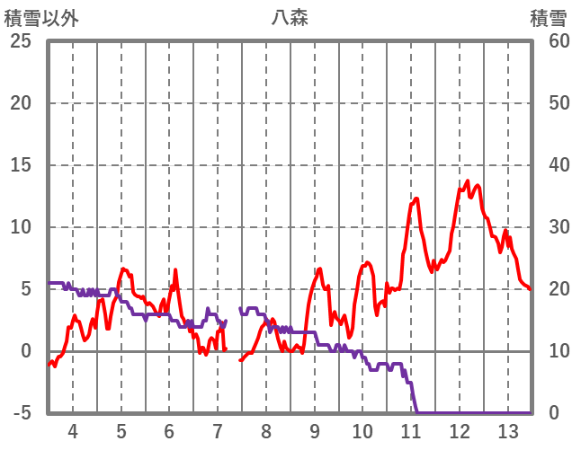 | 日 | 時 | 気温 | 降水 | 風向/風速 | 日照 | 積雪 | 降雪 |