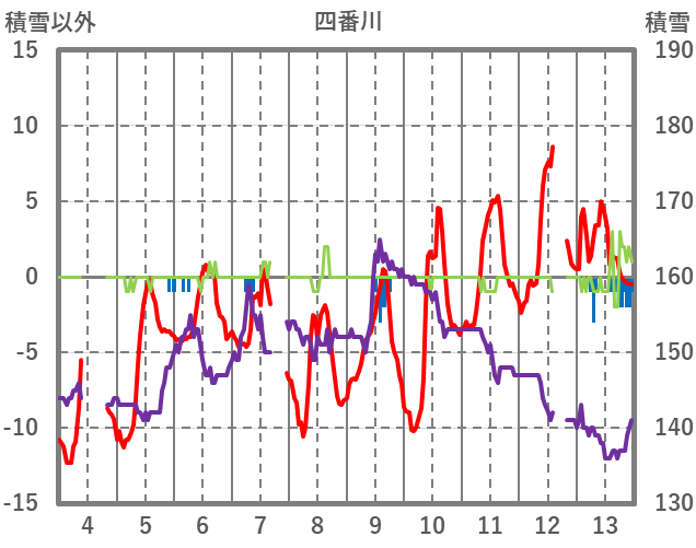 | 日 | 時 | 気温 | 降水 | 風向/風速 | 日照 | 積雪 | 降雪 |