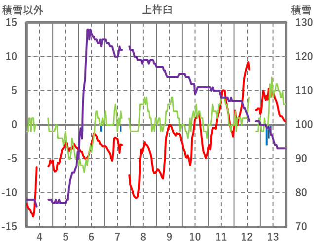 | 日 | 時 | 気温 | 降水 | 風向/風速 | 日照 | 積雪 | 降雪 |