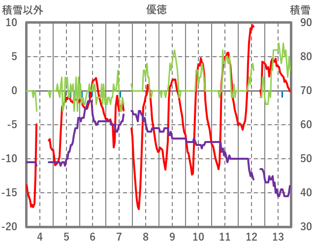| 日 | 時 | 気温 | 降水 | 風向/風速 | 日照 | 積雪 | 降雪 |