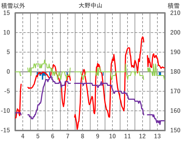 | 日 | 時 | 気温 | 降水 | 風向/風速 | 日照 | 積雪 | 降雪 |