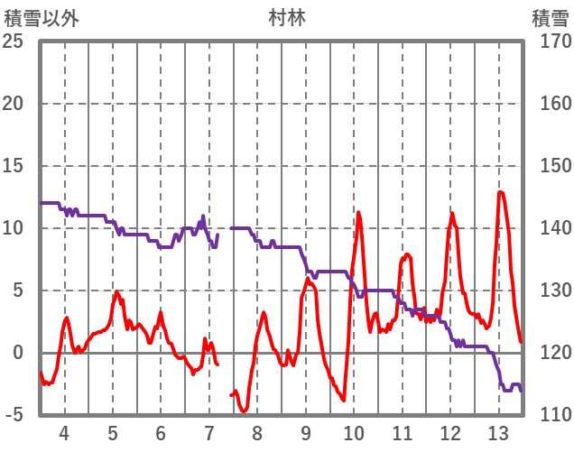 | 日 | 時 | 気温 | 降水 | 風向/風速 | 日照 | 積雪 | 降雪 |