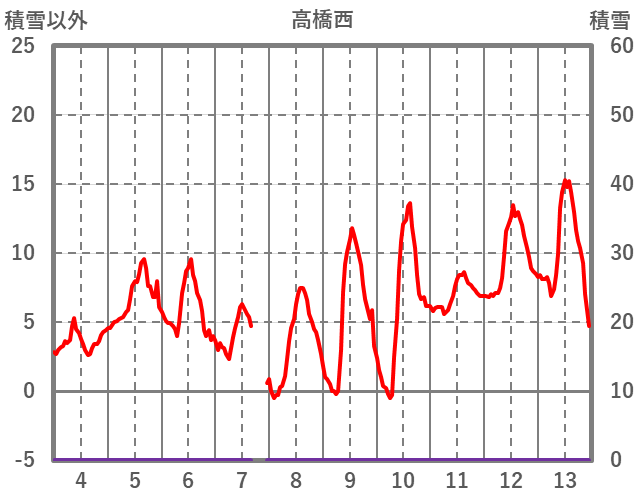 | 日 | 時 | 気温 | 降水 | 風向/風速 | 日照 | 積雪 | 降雪 |