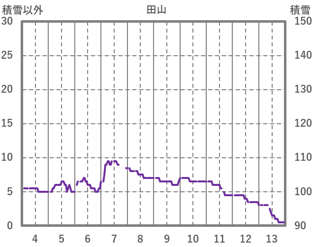 | 日 | 時 | 気温 | 降水 | 風向/風速 | 日照 | 積雪 | 降雪 |