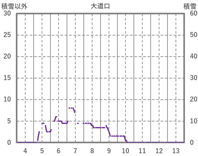 | 日 | 時 | 気温 | 降水 | 風向/風速 | 日照 | 積雪 | 降雪 |