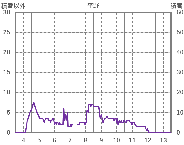 | 日 | 時 | 気温 | 降水 | 風向/風速 | 日照 | 積雪 | 降雪 |