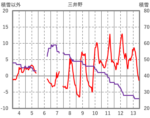 | 日 | 時 | 気温 | 降水 | 風向/風速 | 日照 | 積雪 | 降雪 |