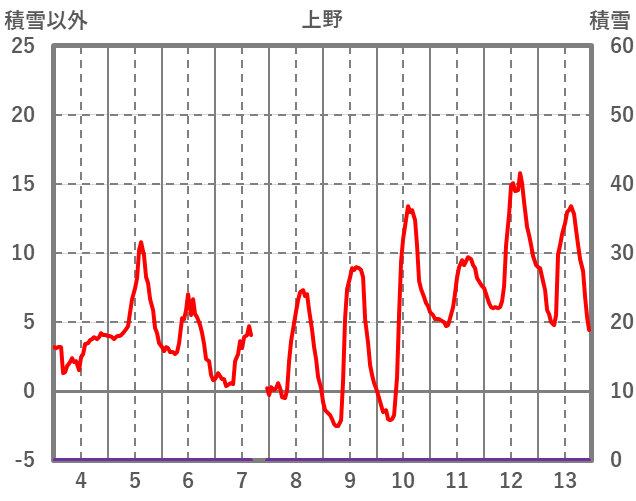 | 日 | 時 | 気温 | 降水 | 風向/風速 | 日照 | 積雪 | 降雪 |