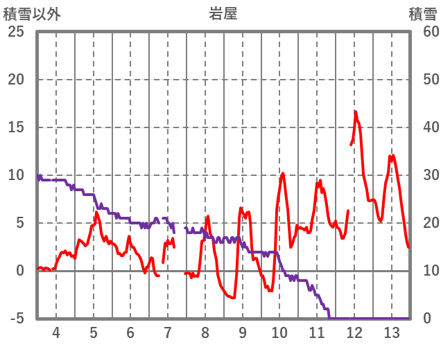 | 日 | 時 | 気温 | 降水 | 風向/風速 | 日照 | 積雪 | 降雪 |