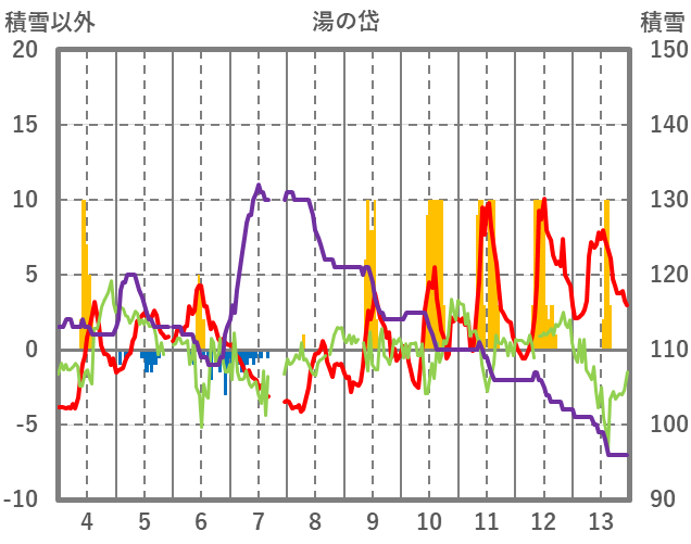 | 日 | 時 | 気温 | 降水 | 風向/風速 | 日照 | 積雪 | 降雪 |