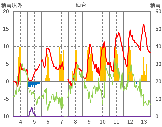 | 日 | 時 | 気温 | 降水 | 風向/風速 | 日照 | 積雪 | 降雪 |