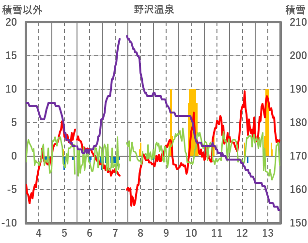 | 日 | 時 | 気温 | 降水 | 風向/風速 | 日照 | 積雪 | 降雪 |