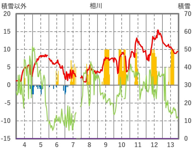 | 日 | 時 | 気温 | 降水 | 風向/風速 | 日照 | 積雪 | 降雪 |