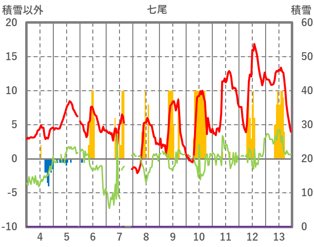 | 日 | 時 | 気温 | 降水 | 風向/風速 | 日照 | 積雪 | 降雪 |