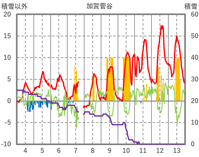 | 日 | 時 | 気温 | 降水 | 風向/風速 | 日照 | 積雪 | 降雪 |
