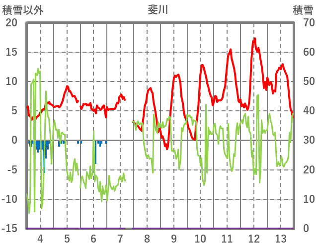 | 日 | 時 | 気温 | 降水 | 風向/風速 | 日照 | 積雪 | 降雪 |