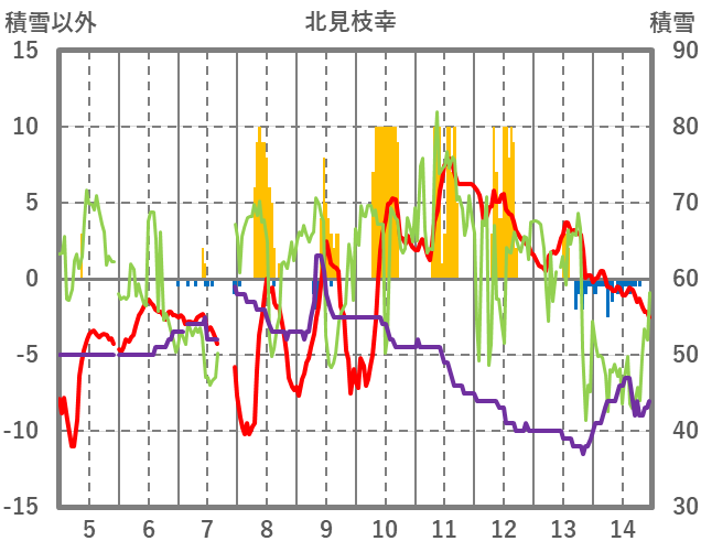 | 日 | 時 | 気温 | 降水 | 風向/風速 | 日照 | 積雪 | 降雪 |