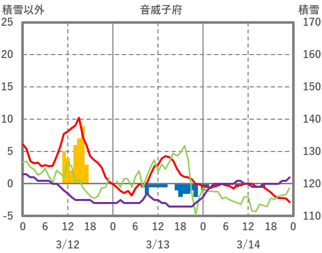 | 日 | 時 | 気温 | 降水 | 風向/風速 | 日照 | 積雪 | 降雪 |