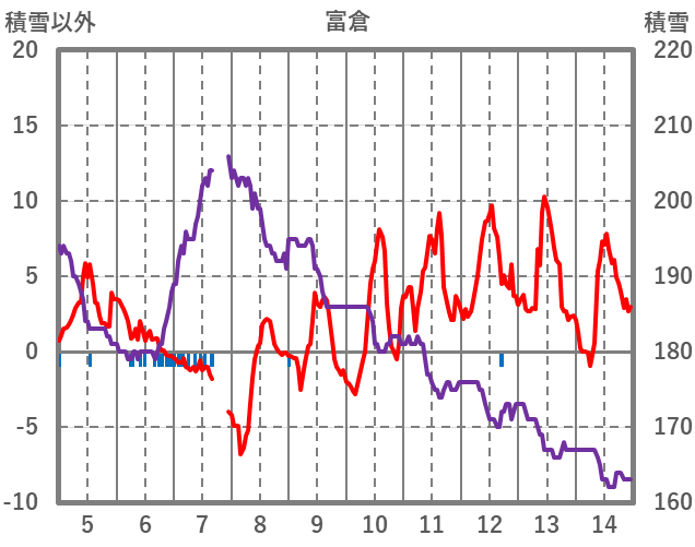 | 日 | 時 | 気温 | 降水 | 風向/風速 | 日照 | 積雪 | 降雪 |