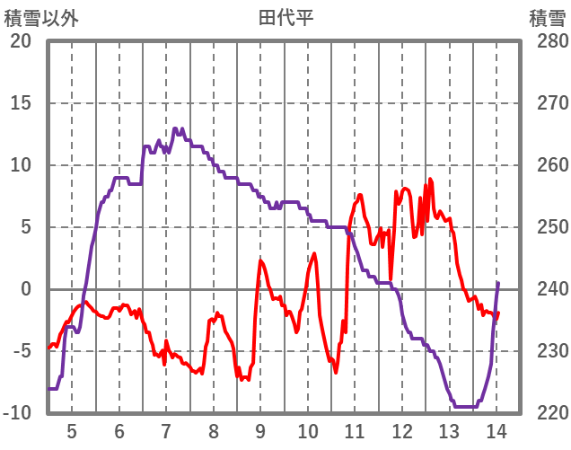 | 日 | 時 | 気温 | 降水 | 風向/風速 | 日照 | 積雪 | 降雪 |