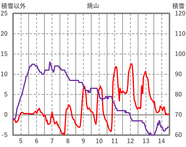| 日 | 時 | 気温 | 降水 | 風向/風速 | 日照 | 積雪 | 降雪 |