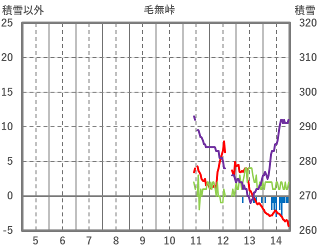 | 日 | 時 | 気温 | 降水 | 風向/風速 | 日照 | 積雪 | 降雪 |