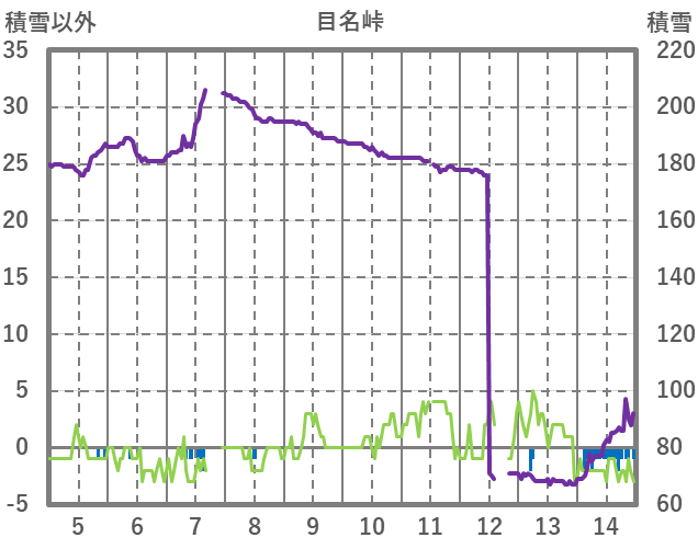 | 日 | 時 | 気温 | 降水 | 風向/風速 | 日照 | 積雪 | 降雪 |