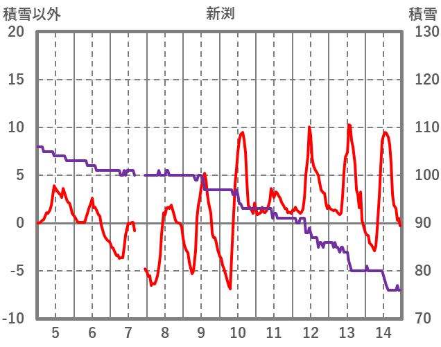 | 日 | 時 | 気温 | 降水 | 風向/風速 | 日照 | 積雪 | 降雪 |