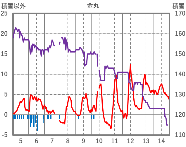 | 日 | 時 | 気温 | 降水 | 風向/風速 | 日照 | 積雪 | 降雪 |