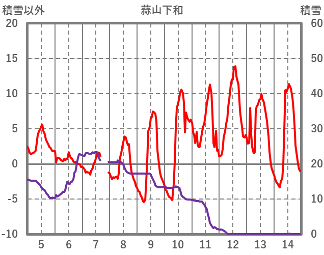 | 日 | 時 | 気温 | 降水 | 風向/風速 | 日照 | 積雪 | 降雪 |