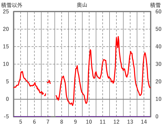 | 日 | 時 | 気温 | 降水 | 風向/風速 | 日照 | 積雪 | 降雪 |