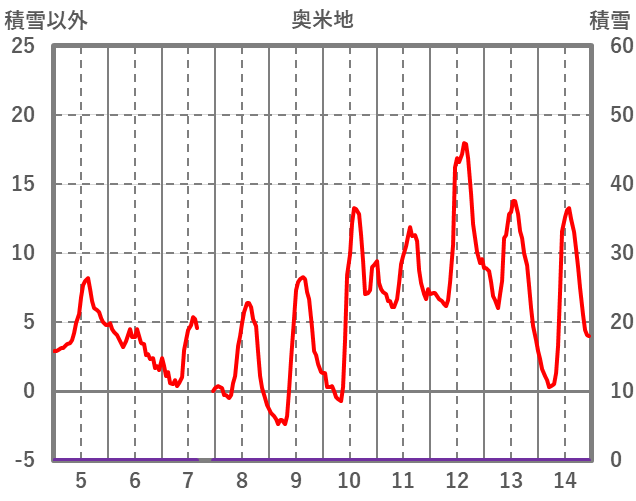 | 日 | 時 | 気温 | 降水 | 風向/風速 | 日照 | 積雪 | 降雪 |