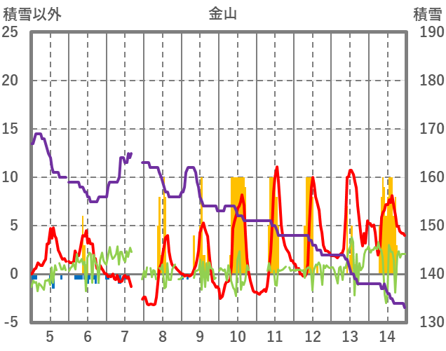 | 日 | 時 | 気温 | 降水 | 風向/風速 | 日照 | 積雪 | 降雪 |