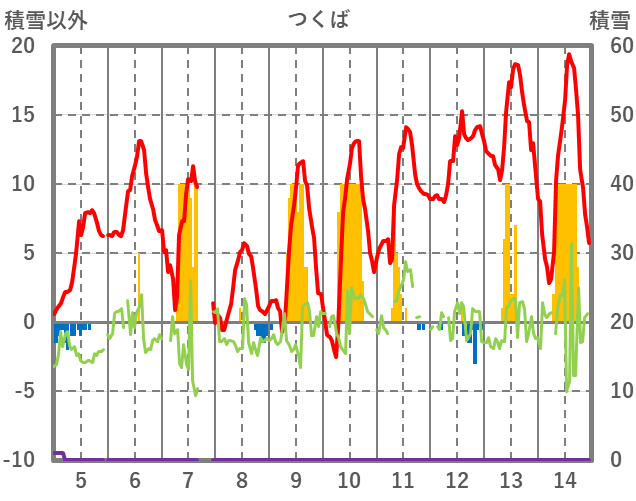 | 日 | 時 | 気温 | 降水 | 風向/風速 | 日照 | 積雪 | 降雪 |