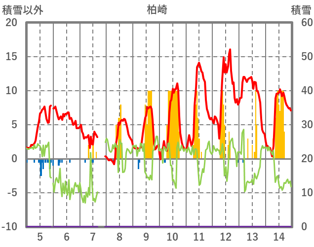| 日 | 時 | 気温 | 降水 | 風向/風速 | 日照 | 積雪 | 降雪 |