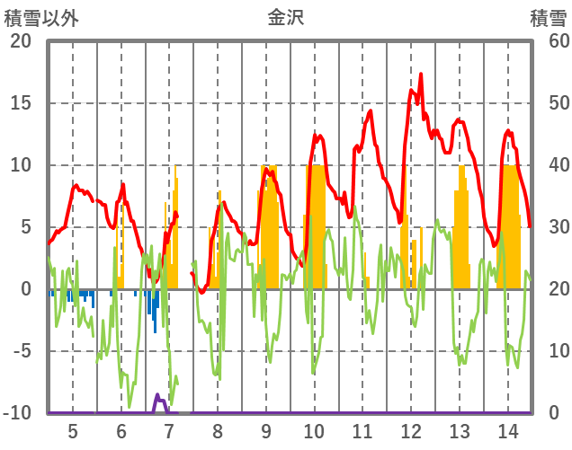 | 日 | 時 | 気温 | 降水 | 風向/風速 | 日照 | 積雪 | 降雪 |